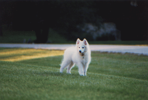 • るねきち家の愛犬、Chilio 号です(この写真はかなり幼児期のもの)。品種は Samoyed という、シベリア原産の犬です。雄です。1987 年にアメリカにて泥 棒に入られた後に、我が家に番犬としてやってきました。